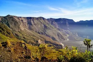 | Kawah yang luas dan dalam ini terdapat di Gunung Tambora, Kabupaten Dompu, Nusa Tenggara Barat, terbentuk akibat erupsi hebat pada April 1815 |